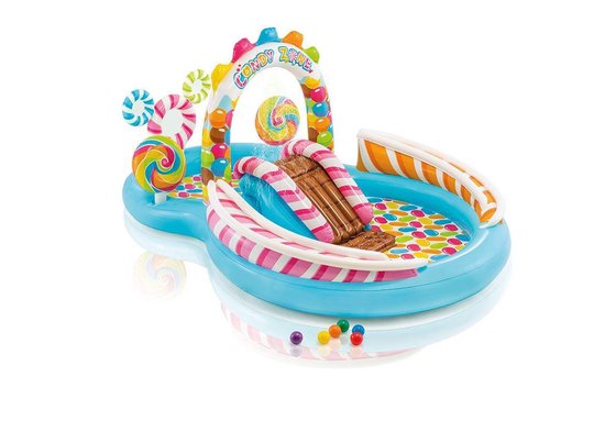 Zoek je een leuk en fantasierijk zwembad voor je kinderen? Kijk dan eens naar het Intex Candy Land zwembad. Dit zwembad bestaat uit twee delen, een groot bad en een klein bad die door een glijbaan met elkaar verbonden zijn. Je kinderen zullen zich uitleven door met de zes bijgeleverde ballen te spelen, ze door de twee ballenbanen te gooien of te proberen ze in de drie ringen te krijgen.